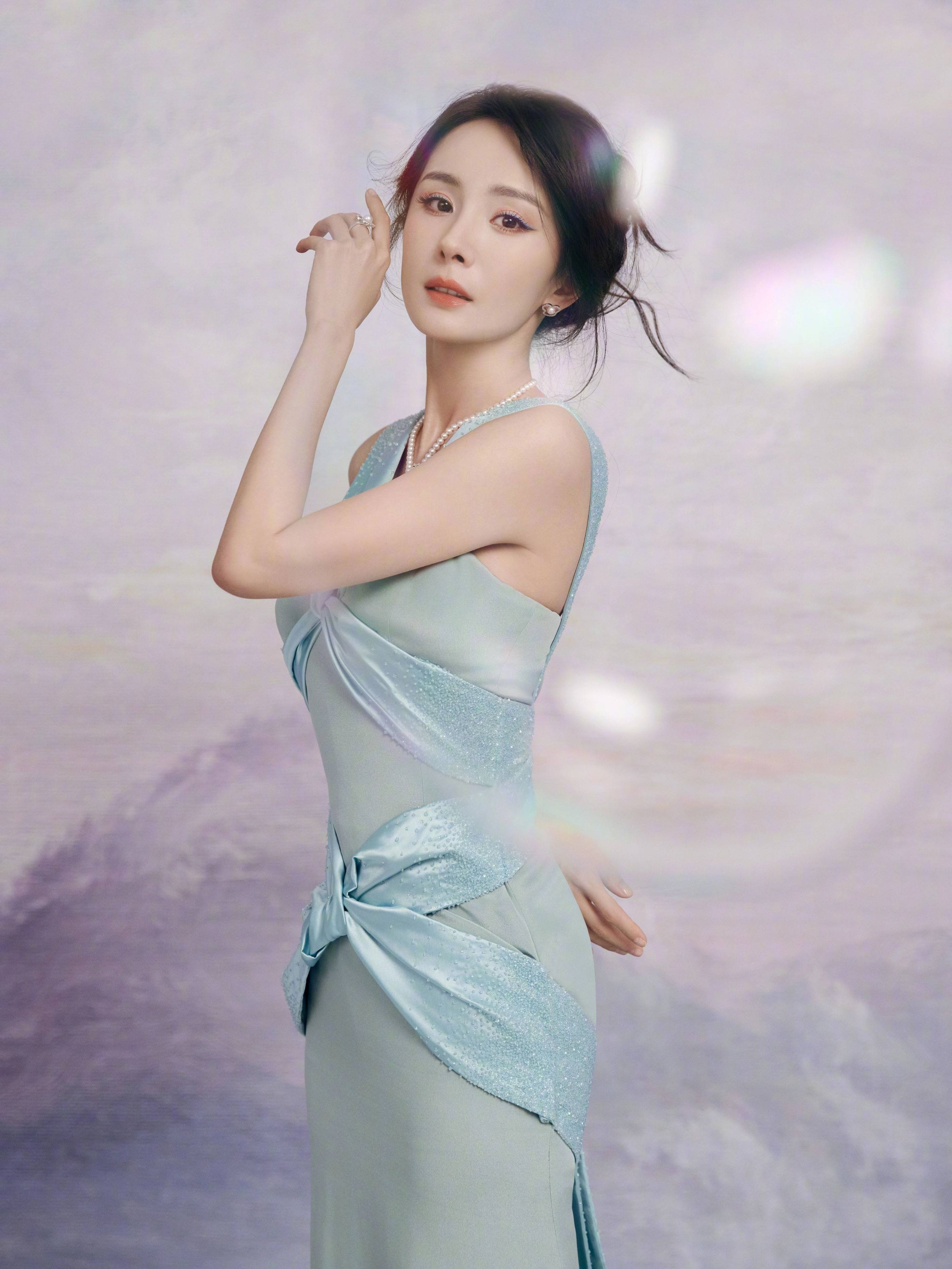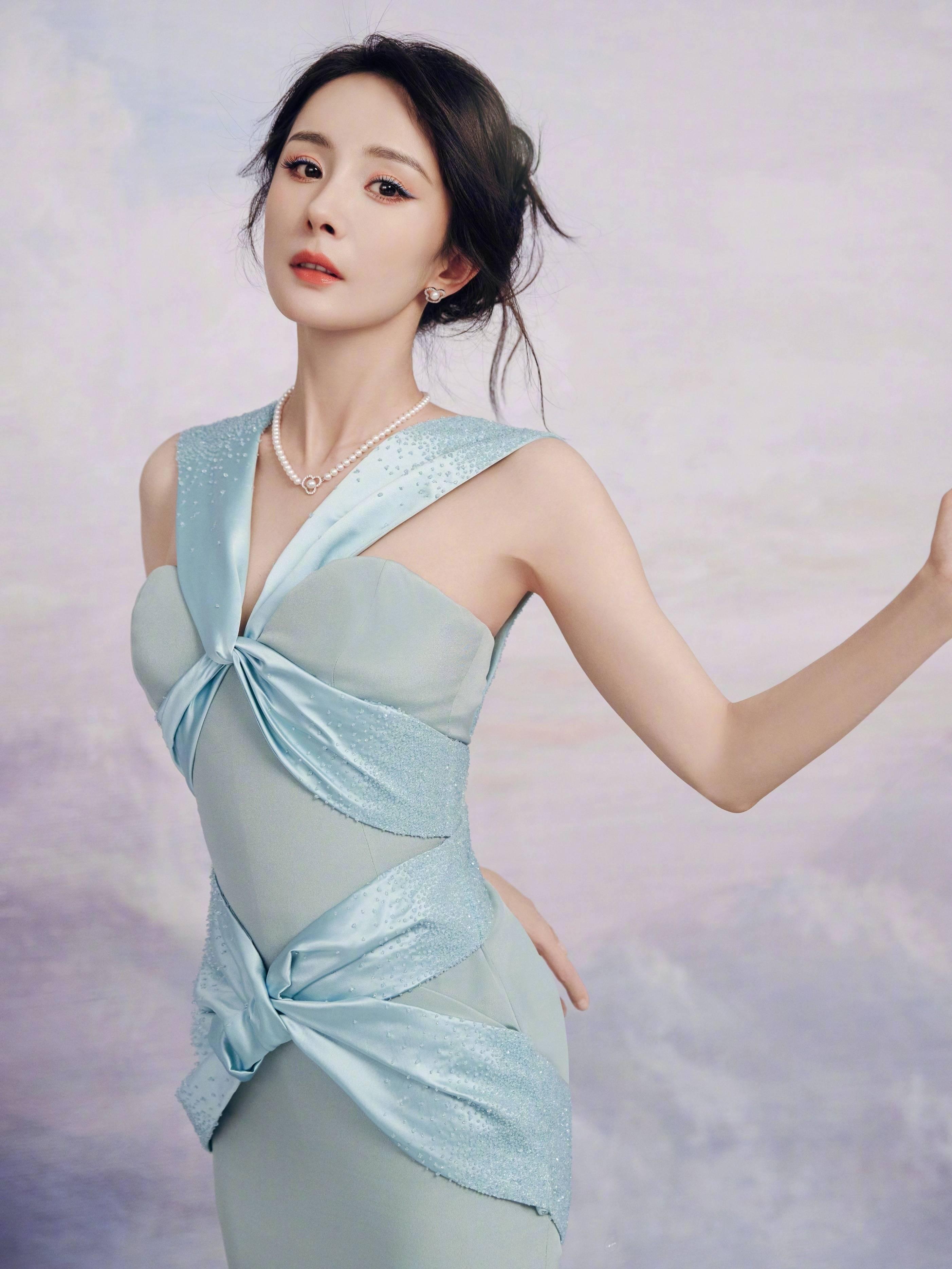 杨幂的造型最打动人的地方,就是她那近乎完美的身材比例。从肩颈线条到腰臀比,每一处都恰到好处。冰蓝色长裙的剪裁非常贴合,尤其在腰部位置做了明显收束,形成了“上短下长”的三七比例。